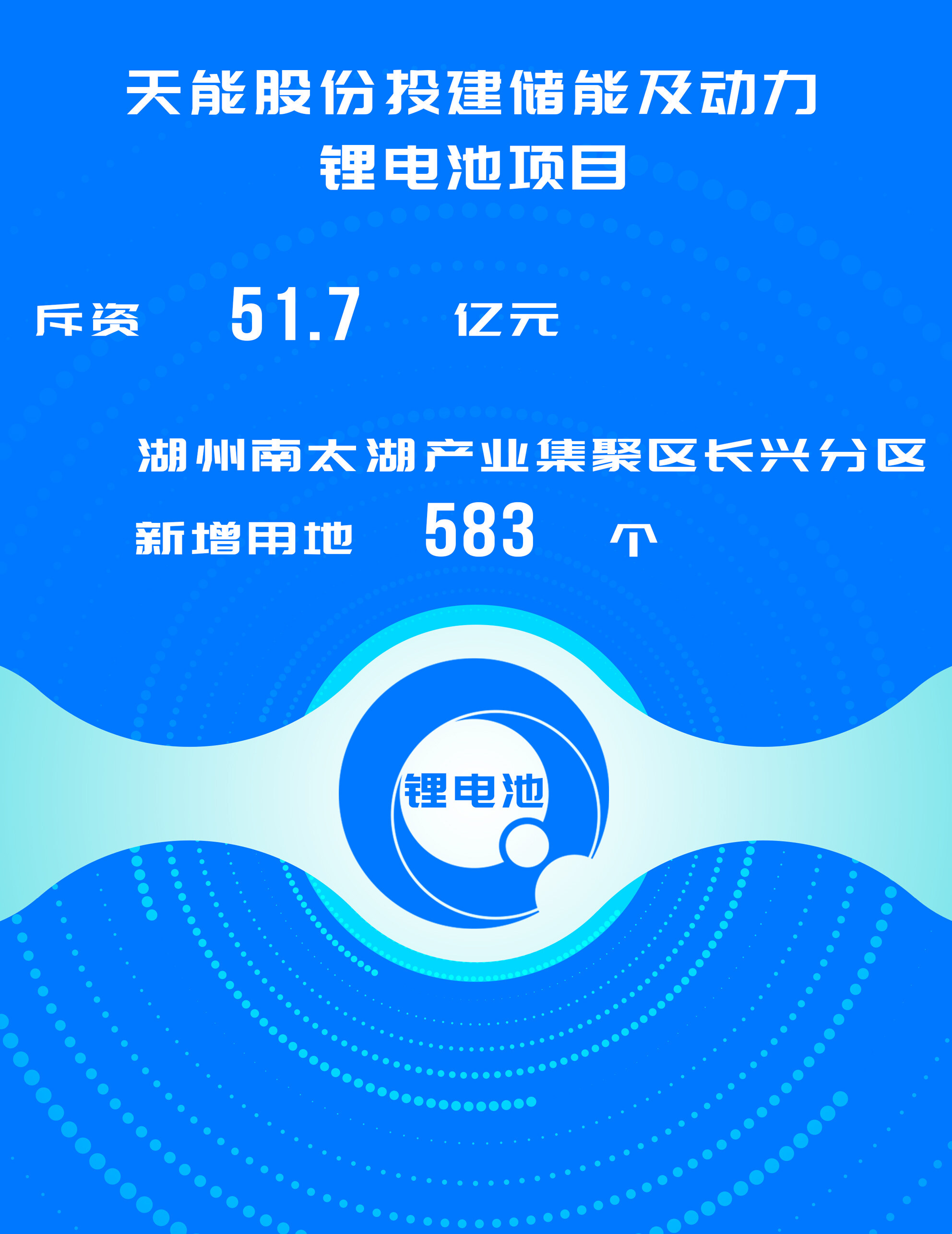 近年来,受益于全球碳中和的战略部署、储能项目成本的下行趋势,全球储能电池市场将保持稳步增长态势。日前,天能股份公告,公司拟以全资子公司浙江新能源作为项目实施主体,在湖州南太湖产业集聚区长兴分区新增用地583亩,投资建设年产15GWh储能及动力锂电池项目,预计总投资约51.7亿元。