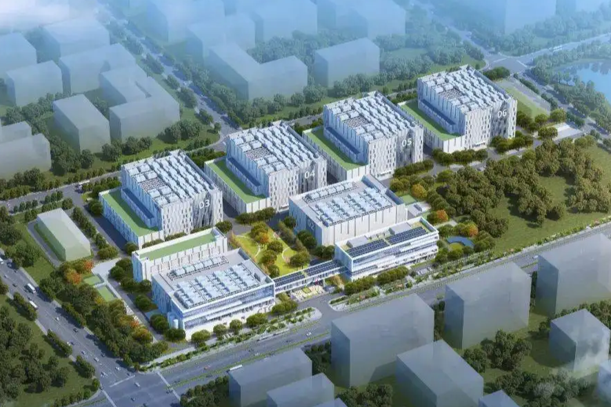 该项目共规划有建筑10幢,包括6幢数据中心、1幢动力中心、1幢生产调度中心、2座110kv变电站。其中,一期工程规划建筑面积14.72万平方米,可装8kw机柜1.2万个。