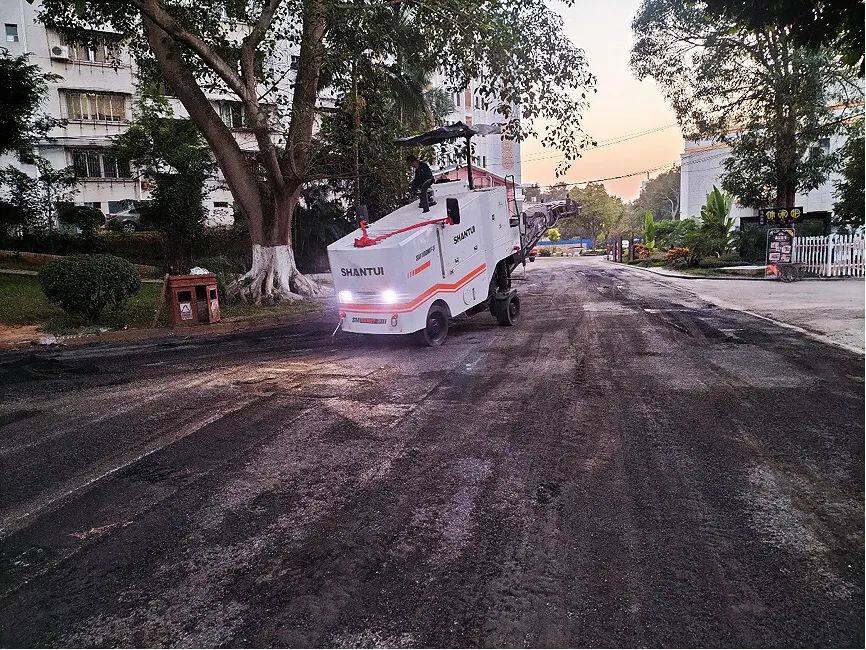 في ظلال الأشجار المرقطة ، ملأ خزان المياه خزان المياه الخاص بآلة الطحن ، وتبع لودر شانتوي إعادة تدوير المواد القديمة. كان الجهازان واحدًا تلو الآخر ، مما جذب العديد من المواطنين للتوقف والمراقبة ، "انظر ، كل شيء شانتوي. المعدات ، قمنا بإصلاح الطريق بسرعة كبيرة ، وسوف يكون مفتوحًا لحركة المرور قريبًا! "
