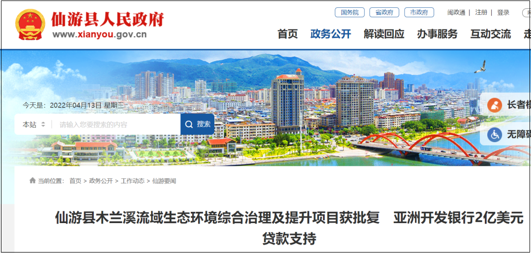 في الآونة الأخيرة ، وافقت لجنة التنمية والإصلاح في مقاطعة فوجيان على "خطة تنفيذ قرض بنك التنمية الآسيوي للإدارة الشاملة وتحسين البيئة الإيكولوجية لحوض نهر مولان في مقاطعة شيانيو بمقاطعة فوجيان" ، والتي تم دعمها بقرض بقيمة 200 مليون دولار أمريكي من بنك التنمية الآسيوي.