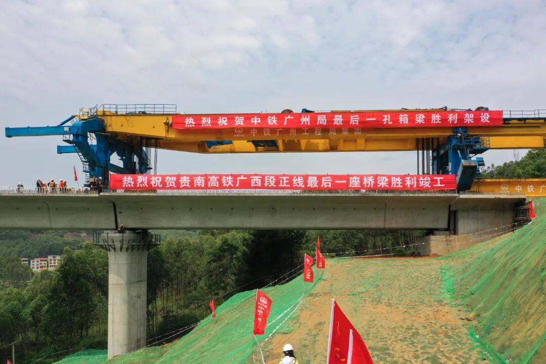 2022年4月19日上午,在广西南宁市马山县的贵南高铁位升双线特大桥施工现场,一榀长32米、重900吨的简支箱梁缓缓落在大桥指定桥墩上,标志着这座大桥施工顺利结束,也宣告贵南高铁广西段正线桥梁工程全面竣工。