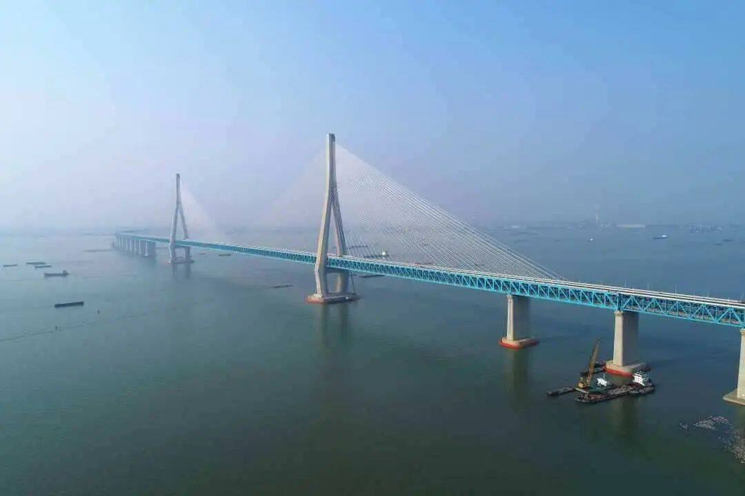 江苏常泰长江大桥主航道桥采用双层1176米斜拉桥,专用航道桥为主跨388米钢拱桥,均刷新了同类桥梁世界纪录。