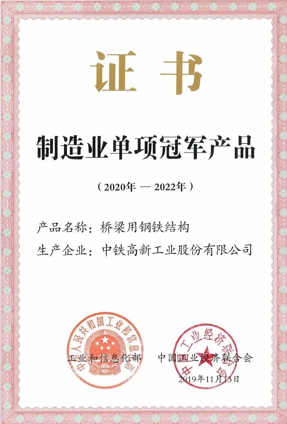 目前,中铁工业及所属企业累计取得了六个中国钢结构制造企业特级资质,参建的官厅水库公路特大桥、青海海黄大桥、港珠澳大桥等钢结构工程先后荣获中国工程建设焊接最高质量荣誉优秀焊接工程一等奖、特等奖,充分体现了中铁工业在钢结构制造领域雄厚的技术实力和强大的行业话语权。