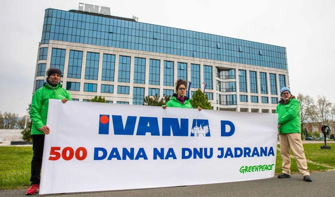 绿色和平组织克罗地亚分部的活动人士在INA位于萨格勒布的总部前抗议指出,在天然气平台IvanaD沉没500天后,仍然没有关于事故原因的信息,也没有恢复工作。活动人士说,政府必须加强监督并检查所有海上天然气平台,包括甲烷泄漏。INA的IvanaD天然气平台在亚得里亚海沉没五百天后,官员们对原因保持沉默。
