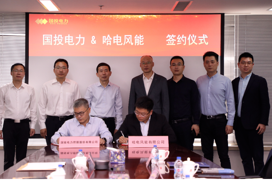 2022年4月21日,哈电风能有限公司(以下简称:哈电风能)与国投电力控股股份有限公司(以下简称:国投电力)在北京举行战略合作签约仪式。哈电风能党委副书记、总经理谭文理,国投电力总经理张文平出席并见证签约。