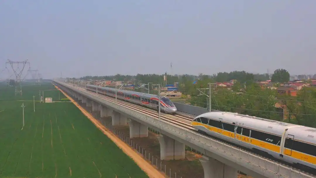Since April 2022, the world's leading new Fuxing high-speed comprehensive inspection train has carried out the preliminary test of the development of the CR450 EMU on the Ji-Zheng High-speed Railway and the Zheng-Yu High-speed Railway, and carried out high-speed operation and high-speed intersection conditions on the open track and tunnel respectively. , aerodynamics, resistance, noise and other more than 60 scientific experiments, for the first time in the world, the open-line intersection with a single-column speed of 435 kilometers per hour and a relative speed of 870 kilometers per hour and a single-column tunnel intersection with a speed of 403 kilometers per hour and a relative speed of 806 kilometers per hour have achieved different results. The characteristic data of EMU trains and infrastructures such as high-speed railway foundations and tunnels under working conditions show good performance of relevant indicators, and the changing laws of safety and comfort parameters related to train speed improvement are explored.