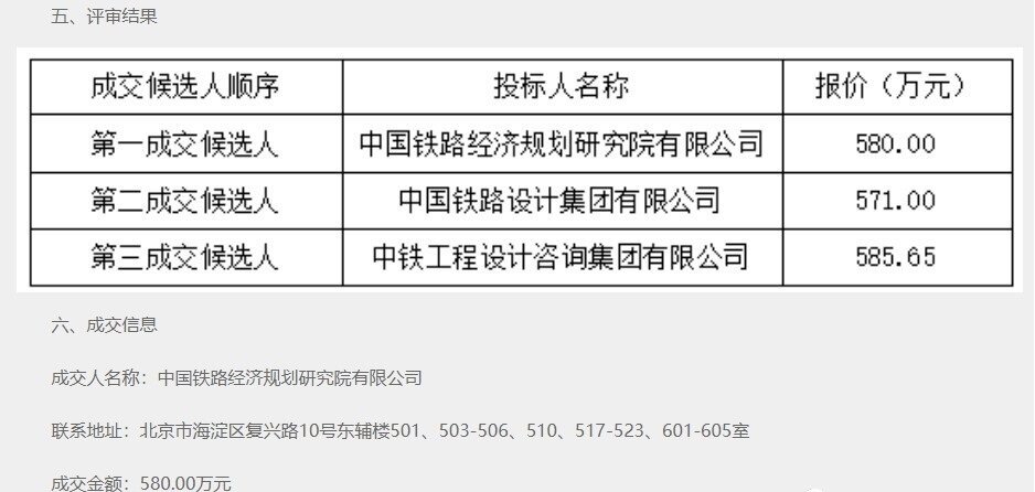 2022年4月20日,《绵遂内铁路可行性研究技术审查服务项目中标结果公告》发布,中国铁路经济规划研究院有限公司以580万元中标。