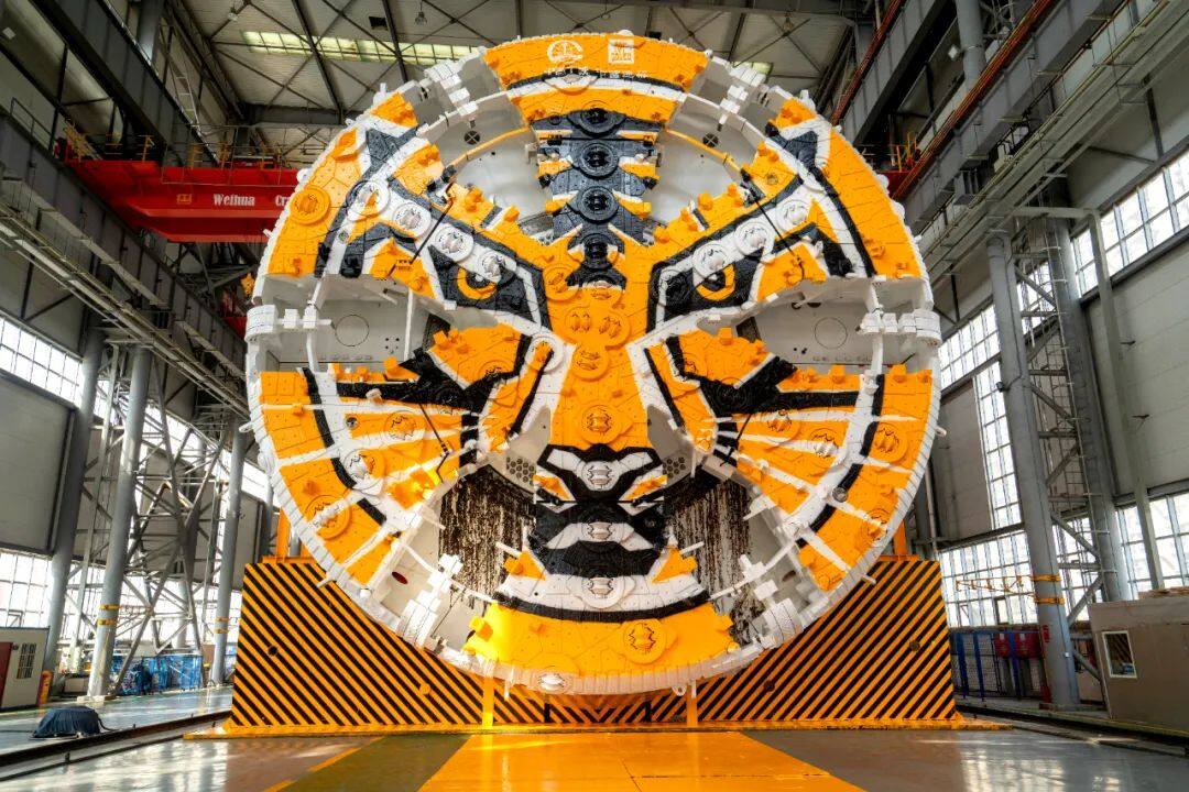 设备刀盘涂装“虎虎生风”图案,灵感源自万兽之王与机械之王的华丽碰撞,寓意虎力全开、勇往直前、无所畏惧,也寓示着设备已整装待发,即将奔赴工程施工现场,在服务隧道建设、创造美好生活的进程中奋勇争先。