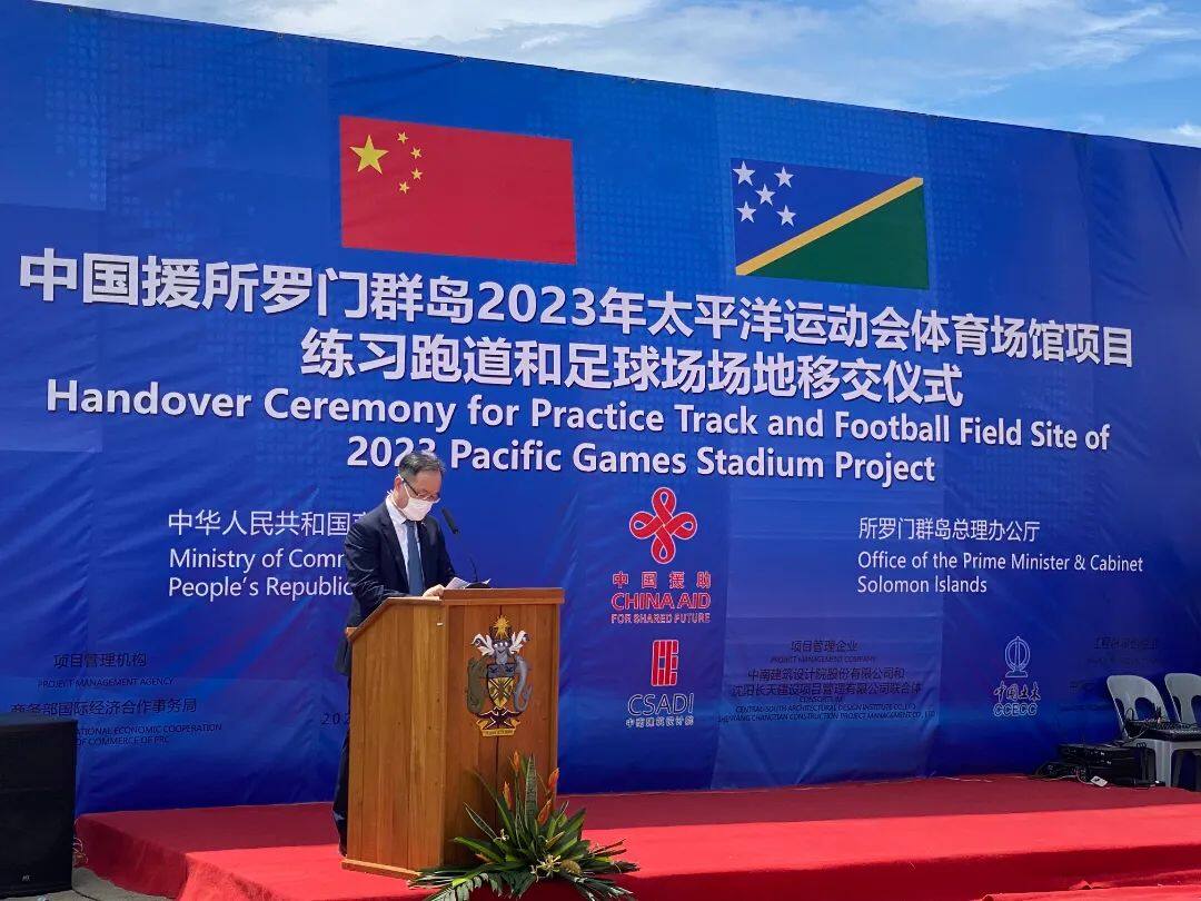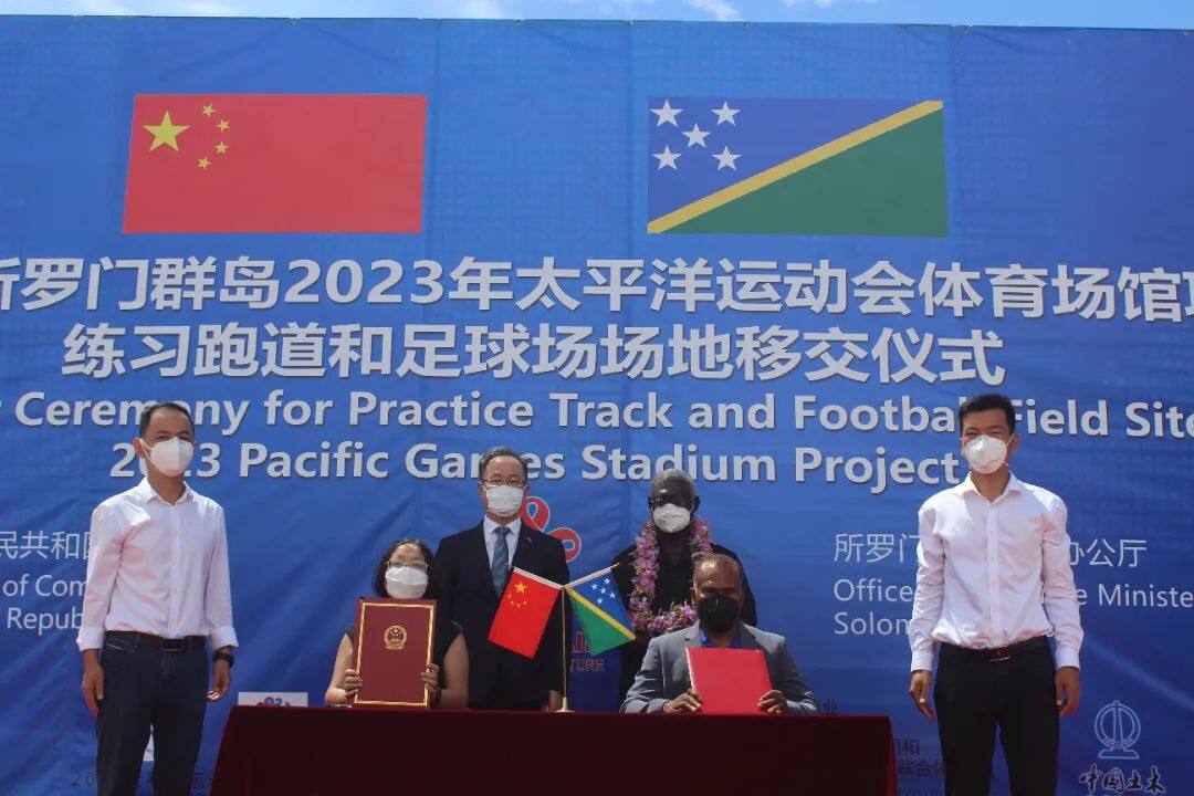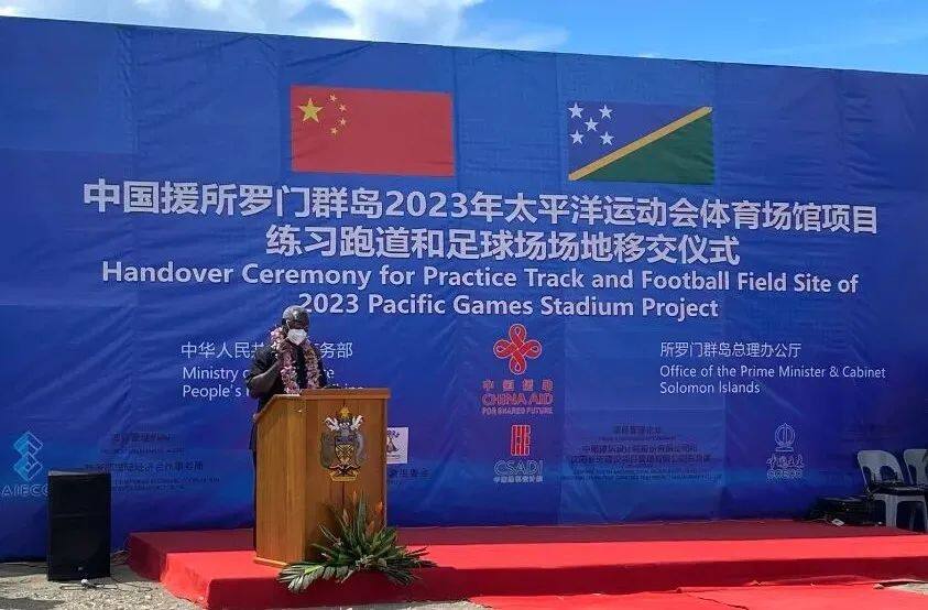 2022年4月22日,所罗门群岛总理梅纳西·索加瓦雷和中国驻所罗门群岛大使李明共同出席援所罗门群岛2023年太平洋运动会体育场馆项目练习跑道和足球场场地移交仪式。所罗门群岛副总理兼基础设施和发展部长梅纳西·梅兰加,以及所内阁部长、国会议员、霍尼亚拉市长、运动会组委会委员,运动员、宗教界及华侨华人和中资企业等代表出席。