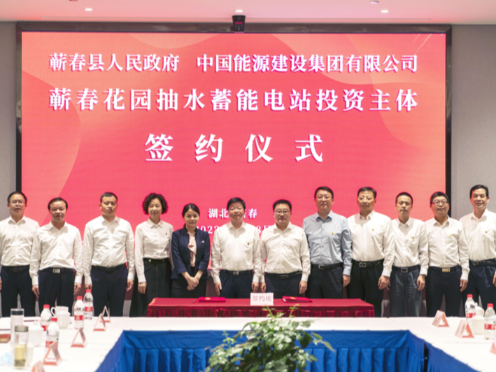 2022年4月28日,中国能建与湖北省蕲春县人民政府正式签订蕲春县花园抽水蓄能电站项目合作协议。