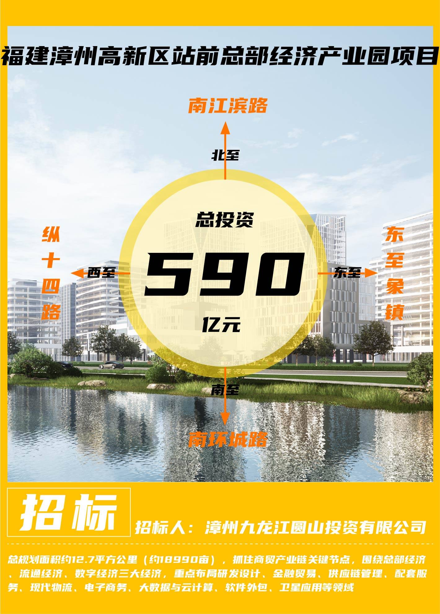 被项目站前总部经济产业园规划范围北至南江滨路、南至南环城路、西至纵十四路、东至象镇互通,总规划面积约12.7平方公里(约18990亩),抓住商贸产业链关键节点,围绕总部经济、流通经济、数字经济三大经济,重点布局研发设计、金融贸易、供应链管理、配套服务、现代物流、电子商务、大数据与云计算、软件外包、卫星应用等领域,致力打造具有全局影响力的漳州总部经济和现代商贸服务集聚区,规划建设总部经济大楼、现代物流园、电子商务园、互联网软件园、“智慧海洋”大数据中心等,本次招标的投资建设内容包括园区内的由招标人或项目公司投资自持的产业项目(包括但不限于工业产房、安置房、医疗康养用房、职业学校、信息化项目等)、配套基础设施项目(包括但不限于园区市政道路及管网、过境公路、供排水设施、污水处理厂站、停车场、固废处理设施、配套学校等)、生态环境提升项目(包括但不限于片内河环境治理工程、水系改造工程、水体整治工程、园林景观工程等),整体招商和建设期约5~10年。关键词:工程建设资讯、市政项目资讯