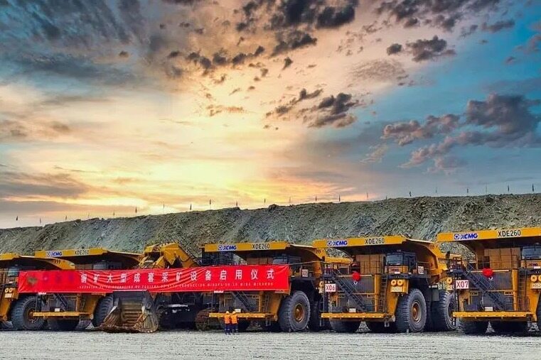 近日,徐工十余台大型成套矿业装备启用仪式在南美某铜矿隆重举行,一排排徐工金红绸披挂,整齐列队,开启南美铜矿采剥、挖装、运输作业。