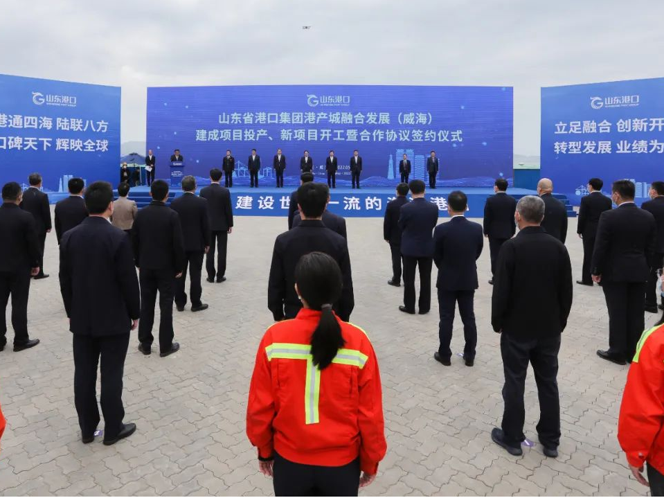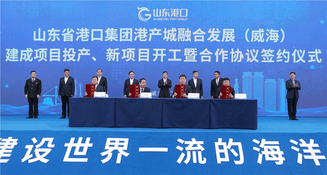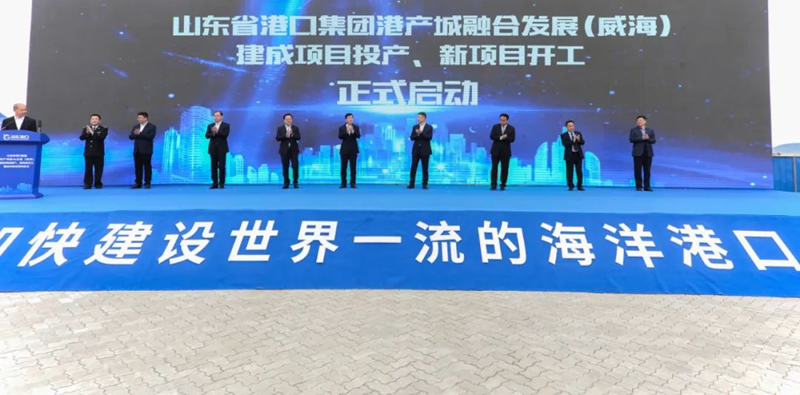 2022年5月10日,山东港口港产城融合发展(威海)建成项目投产、新项目开工暨合作协议签约仪式在山东港口威海港二突堤码头建设现场举行。此次建成投产及拟新开工重点项目14项,总投资128.08亿元,涵盖交通运输、能源仓储、商贸流通、文旅康养、海洋渔业等重点领域,强力开启2022年山东港口与威海市港产城融合发展新征程。