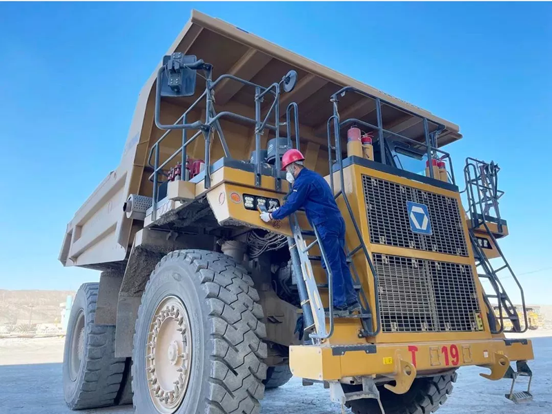 Here, his job is to be responsible for the routine services of XCMG mining dump trucks: maintenance, operation training, etc., such as small bolts, oil pipes, clamps and various liquid levels, etc., and large chassis parts and working devices are all must-check items. Pei Ruiji's goal is to always keep XCMG equipment in the best operating condition.