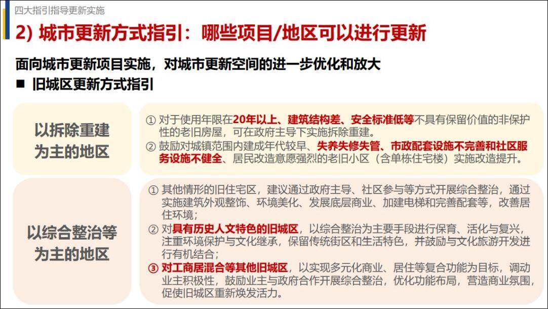 2.旧城区更新指引。以优化居住环境与完善配套设施为目标,以拆除重建、综合整治或二者统筹兼顾开展建设。
