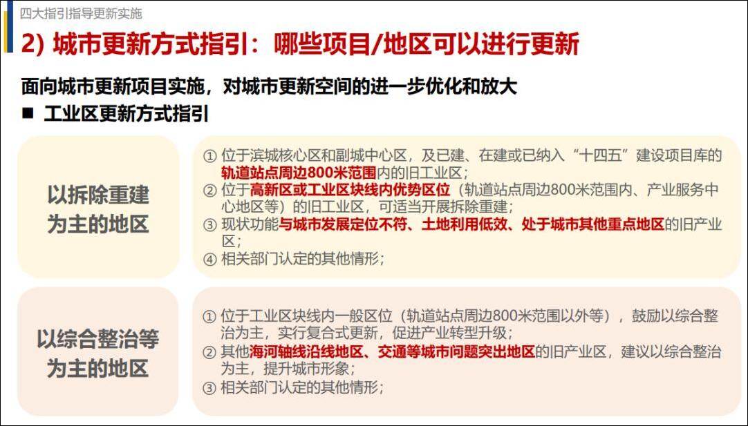 重点推动已列入滨城“十四五”建设十大工程、民生问题改善项目、产业升级改造项目和海河沿线提升项目,具有明确更新意愿且更新方向与片区发展方向无较大冲突的项目。优先保障城市基础设施、公共服务设施或者其他城市公共利益项目,提升城市承载力,积极促进产城融合和职住平衡,增强城市经济活力和人气。(转载请注明见道网www.seetao.com)见道网战略栏目编辑/许生鹏