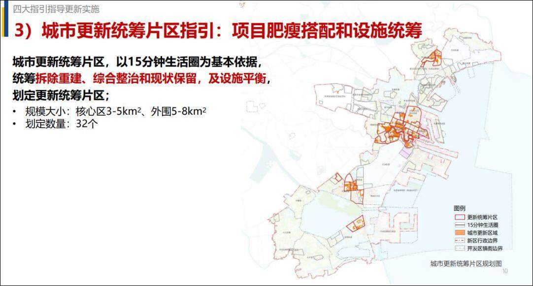 2.城市更新统筹片区指引。为强化政府主导力度,加强对规划编制、重大公共服务设施落地、交通市政基础设施系统承载力提升、片区整体利益平衡等内容的整体统筹。规划初步划定城市更新统筹片区32个,分为以拆除重建为主的城市更新统筹片区10个和以综合整治为主的城市更新统筹片区22个。关键词:基建、基础设施建设、国内工程新闻、规划投资