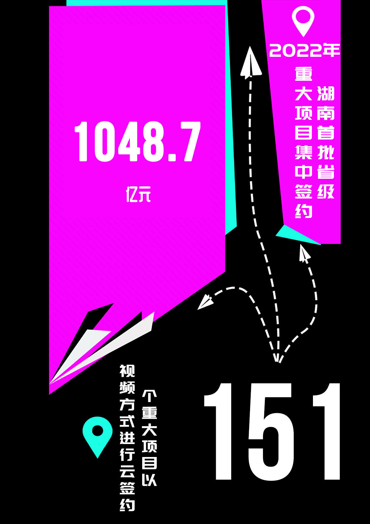 2022年5月11日,2022年湖南第一批省级招商引资重大项目集中签约仪式在线上举行,151个重大项目以视频方式进行云签约,总投资达1048.7亿元,涵盖新能源、新材料、装备制造、电子信息等多个领域。