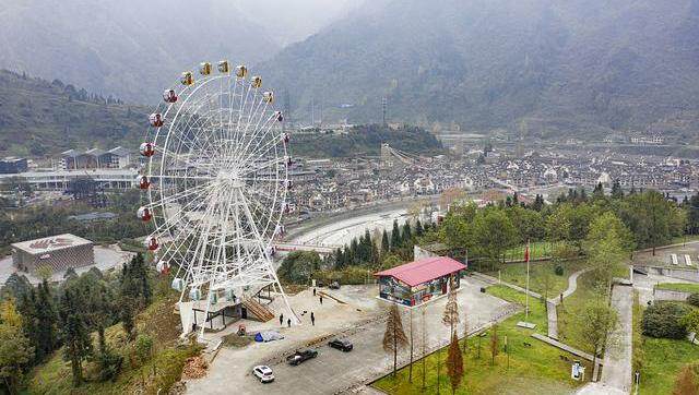 2022年5月7日,航拍四川汶川县映秀镇新貌。四川省阿坝藏族羌族自治州汶川县映秀镇汶川大地震震后重建,现在漩口中学地震遗址旁已建造起一排排坚固整齐的房屋,昔日废墟已是一派新气象。(转载请注明见道网www.seetao.com)见道网战略栏目编辑/许生鹏
