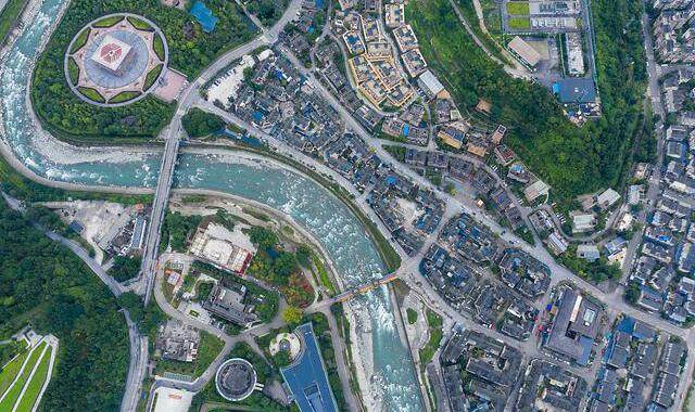 On May 7, 2022, aerial photography of the new appearance of Yingxiu Town, Wenchuan County, Sichuan Province. After the Wenchuan earthquake, Yingxiu Town, Wenchuan County, Aba Tibetan and Qiang Autonomous Prefecture, Sichuan Province was rebuilt after the earthquake. Rows of solid and tidy houses have been built next to the earthquake site of Xuankou Middle School. The ruins of the past have become a new look. Editor / Xu Shengpeng