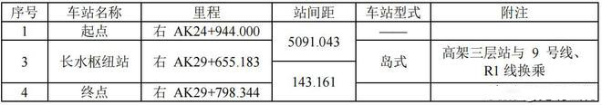 线路起讫点为机场中心站~长水枢纽站。全长4.85km,其中地下线4.54km,高架线0.31km。全线共设车站1座,平均站间距4.85km。