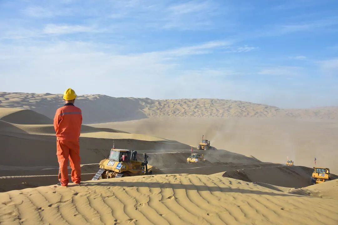 该项目启动以来,施工单位克服了地形复杂、气候条件恶劣等一系列挑战和困难。“沙漠公路途经的区域有30多座高大的沙山,最高的沙山高度超过了100米,相当于30层楼的高度。”中国交建新疆乌尉公路包PPP项目尉且公路项目总工井文云说,他们克服了高温、沙尘暴天气,研究出了“三层推法”的方式攻克了大沙丘,有效缩短了推运距离,降低了成本,提高了施工效率,确保了公路后期的顺利建设。