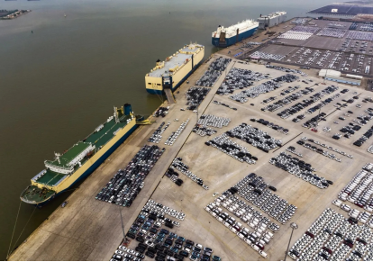Guangzhou Port Nansha Automobile Port is busy with operations