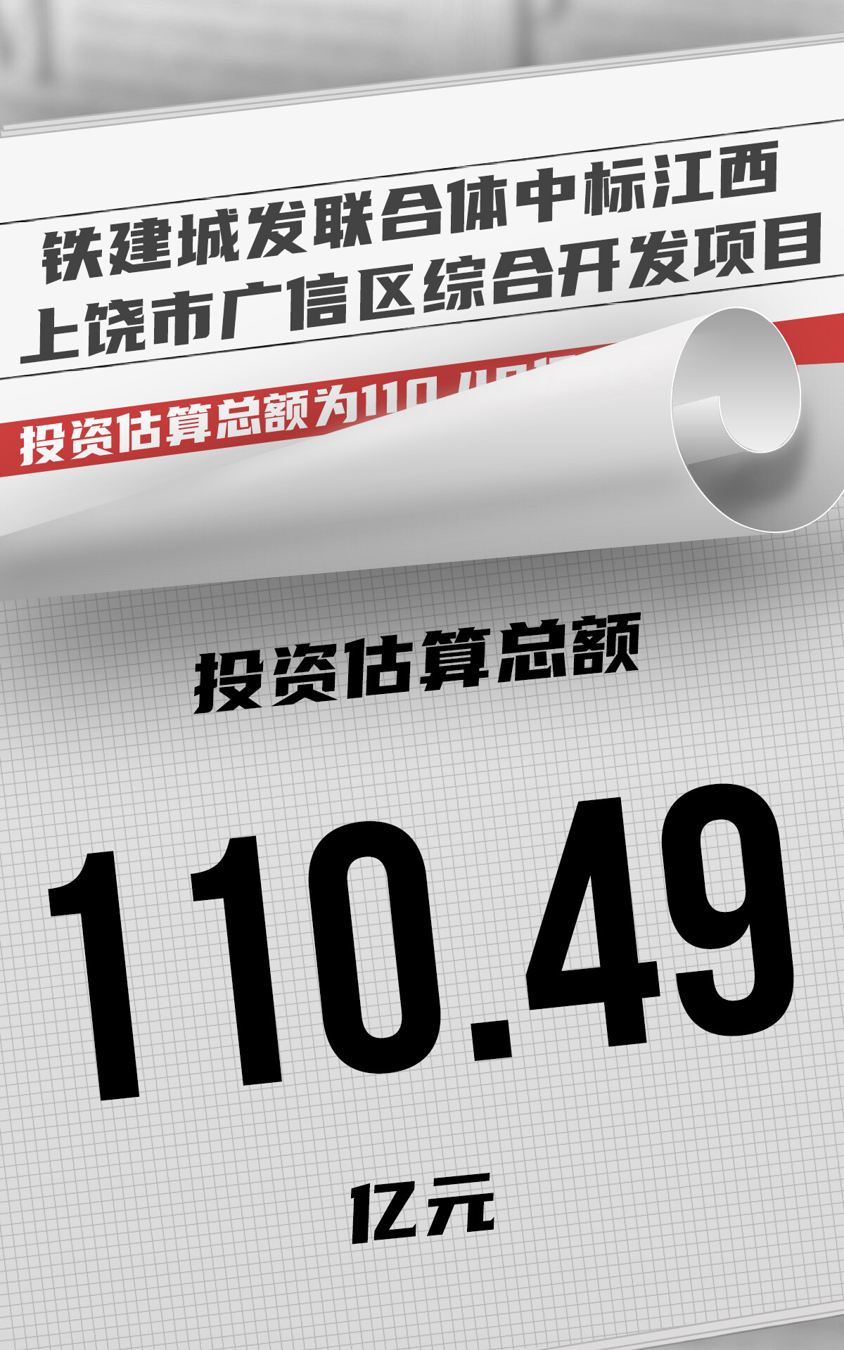 2022年5月17日,江西公共资源交易网发布上饶市广信区新区片区综合开发项目合作投资人+EPC+O中标候选人公示,项目由中铁建城市开发有限公司牵头、中铁建投资基金管理有限公司、中铁建东南投资建设有限公司、中铁建华东建设发展有限公司、中铁第五勘察设计院集团有限公司、中铁十六局集团有限公司、中铁十八局集团有限公司、中铁二十三局集团有限公司、中国铁建电气化局集团有限公司组成的联合体中标,投资估算总额为110.49亿元。