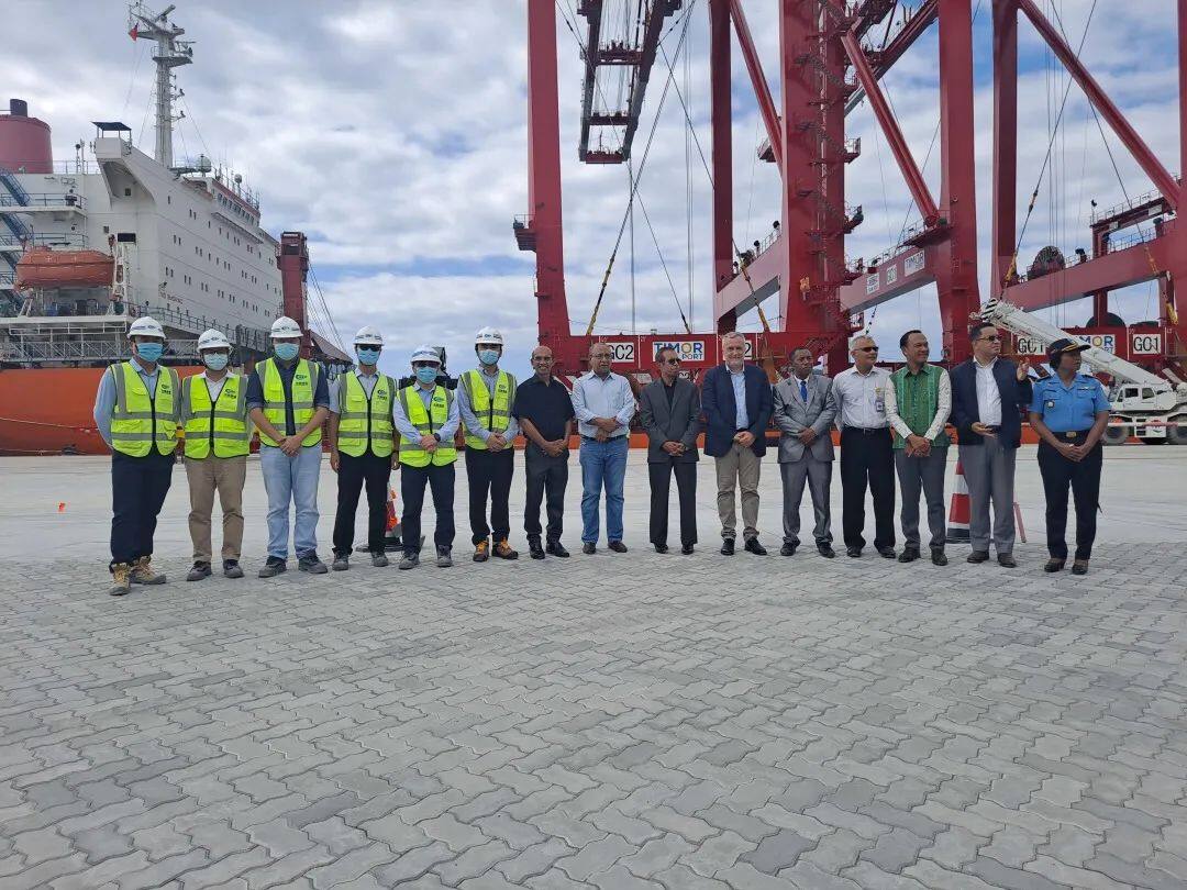 2022年5月16日,东帝汶帝巴湾新集装箱码头项目迎来了装载业主港口岸机和堆场门吊运输船舶振华16号。东帝汶总理鲁瓦克出席港口岸机设备到港欢迎仪式。东帝汶交通部长、财政部长、公共关系部长、经贸部长等多名政要陪同参加。