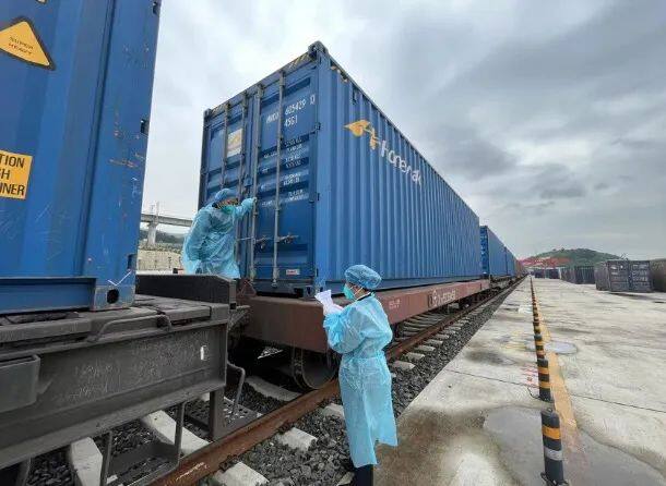 2022年5月18日上午,经中老铁路运抵贵阳综合保税区的5个海外集装箱,搭乘中欧班列,从贵阳都拉营国际陆海通物流港驶出,预计半个月后到达匈牙利布达佩斯。这也是全国首次实现中老铁路与中欧班列国际货物测试衔接。