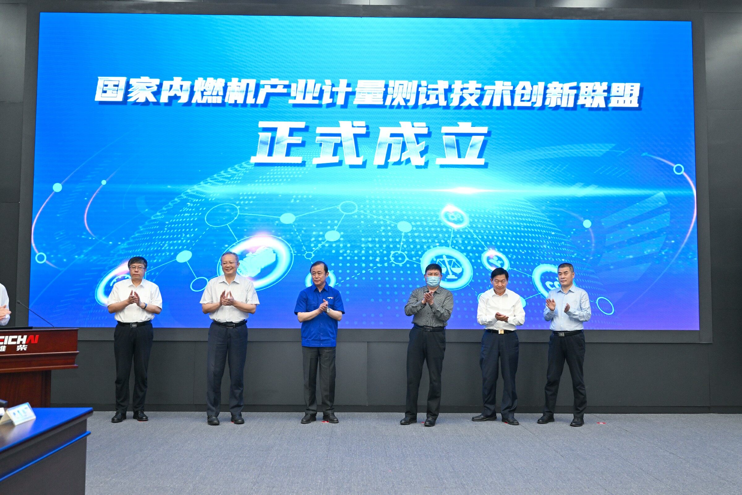 国家市场监管总局计量司副司长朱美娜现场宣读内燃机产业计量中心批筹文件。山东省市场监管局局长侯成君,潍坊市委副书记、市长刘运,山东重工集团党委书记、董事长,潍柴动力董事长谭旭光等共同为国家内燃机产业计量测试中心(筹)揭牌。相关政府部门、院士学者、技术专家及行业代表等1000多人线上线下参加活动,见证了这一内燃机行业的里程碑时刻。
