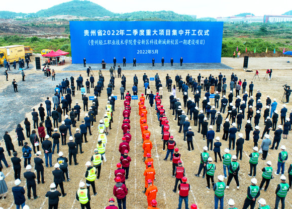 On May 20, 2022, the second-quarter construction commencement ceremony of Guizhou Province was held at the site of the first-phase construction project of the new campus of Science and Technology New City of Guizhou Light Industry Vocational and Technical College. This time, 360 major projects were started, with a total investment of 205.869 billion yuan.