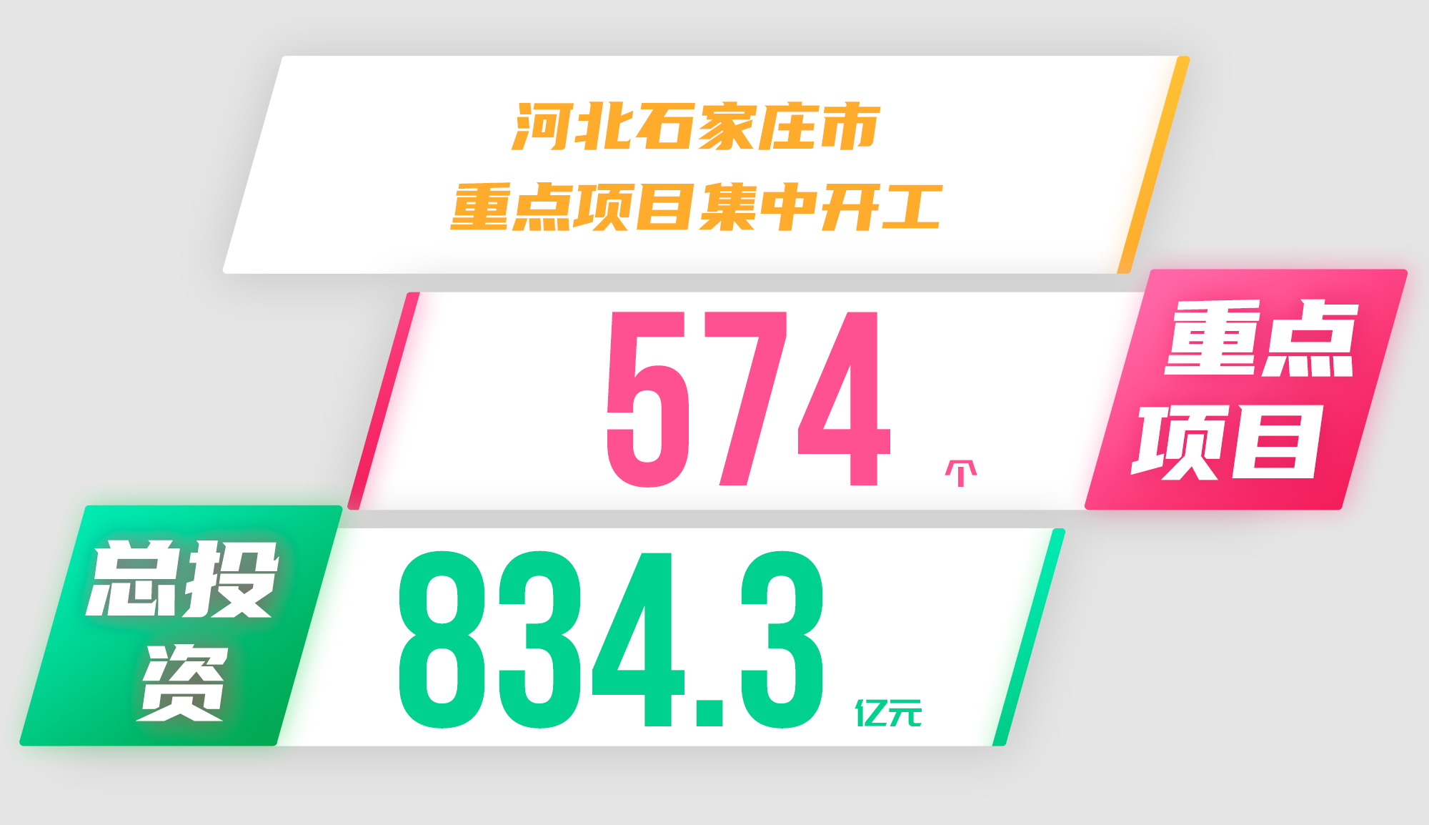 2022年5月23日,河北石家庄市举行第二季度重点项目集中开工活动。据了解,此次共574个重点项目集中开工,总投资834.3亿元,年度预计投资299.1亿元。