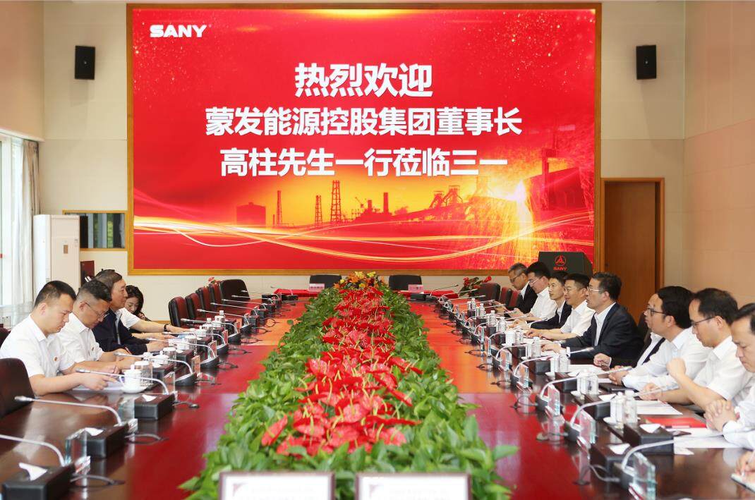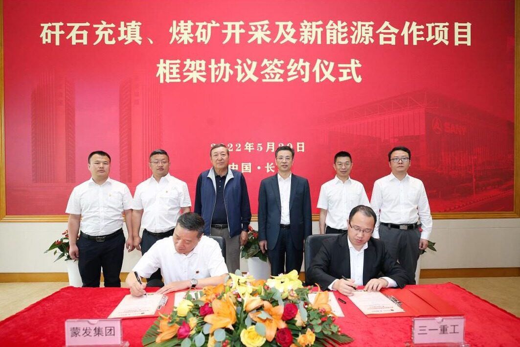2022年5月20日,蒙发能源集团与三一重工在长沙签署战略合作协议,双方将在矸石充填、煤矿开采和新能源领域展开深度合作。蒙发能源集团董事长高柱,三一重工董事长向文波、工程车辆事业部董事长向儒安、工程车辆事业部营销公司总经理陈静等出席签约相关活动。