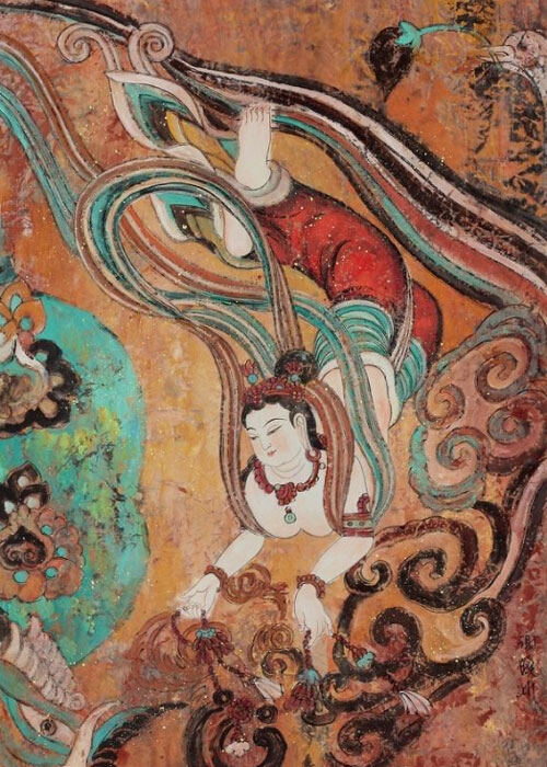 千年的不断营造还为莫高窟留下了45000平方米的壁画,其中以飞天最为出名。我们今天所看到的飞天舞,就来源于壁画中的飞天形象。自明朝开始,莫高窟逐渐被遗弃。风吹沙侵、阳光暴晒再加上人为的破坏,让莫高窟变得残破不堪。窟内的典籍书画也不断被瓜分割裂。