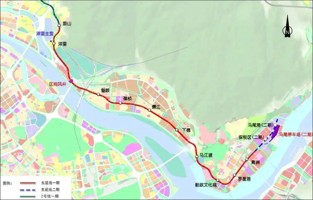 Route map of the first phase of the east extension line of Fuzhou Rail Transit Line 2