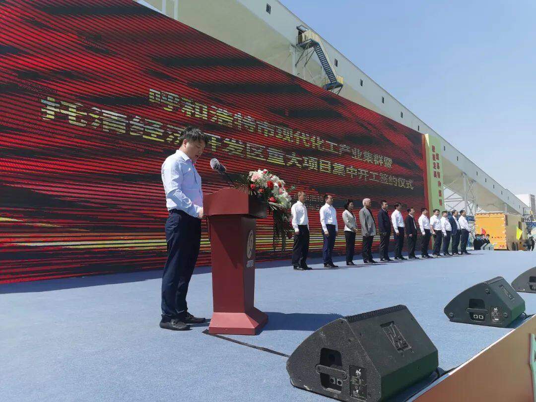 2022年5月28日,呼和浩特市现代化工产业集群重大项目集中开工签约仪式在托清经济开发区内蒙古久泰新材料有限公司建设现场举行。此次集中开工的项目包括兴泰新型精细化学品、旭阳制氢及变电站、久泰高纯液氢等12个项目,以及正式签约的坤宇风光电源网荷储一体化、中电共享储能电站、天皓煤矸石深加工等16个项目,总投资约300亿元。