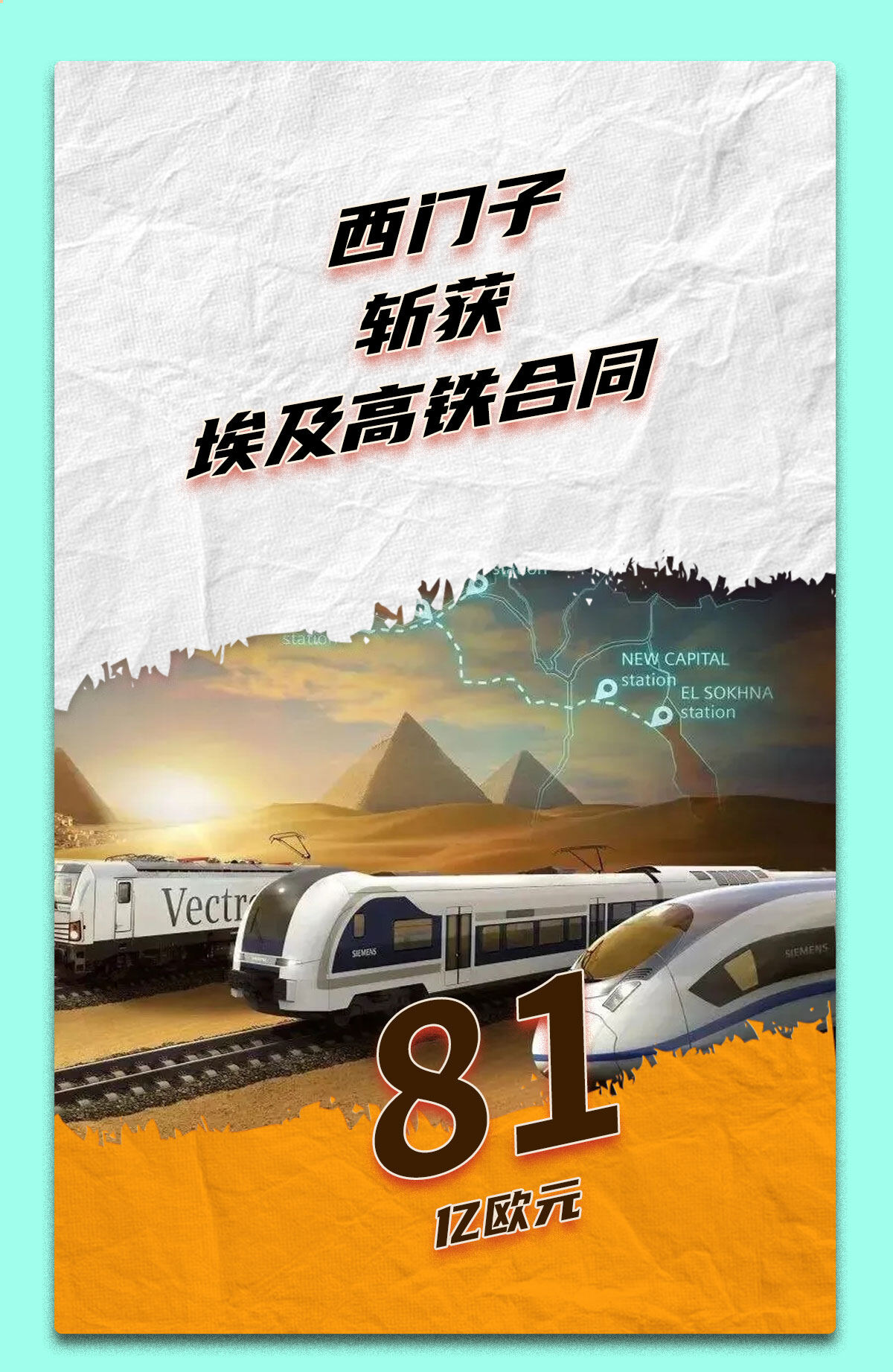 2022年5月28日消息:西门子交通集团、埃及Orascom、Arab Contractors公司组成的联合体已经与埃及交通部下属的国家隧道管理局与签署高铁项目合同,将建设打造世界第六大高铁网络。西门子交通在联合体总合同中的份额为81亿欧元,其中包括2021年9月1日签署的第一条线27亿欧元的初步合同。