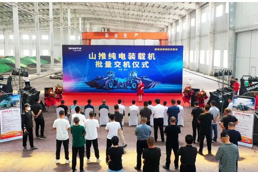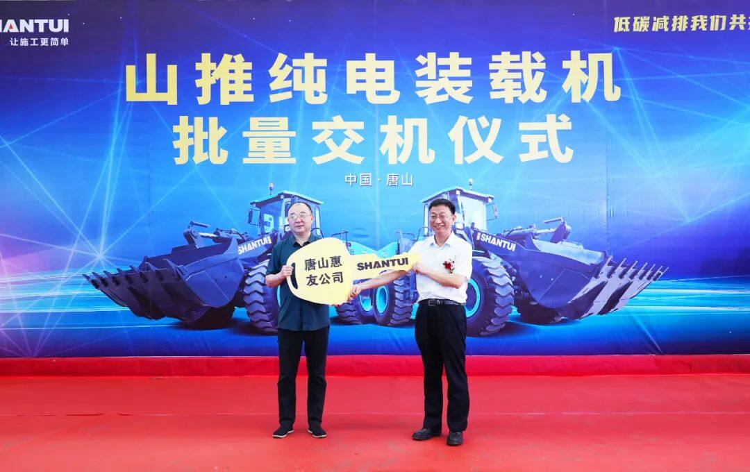 2022年5月29日,山推纯电装载机批量交机仪式,在河北隆重举行。10台山推LE56-X2纯电装载机成功交付河北某物流公司,携手客户共同促进能源转型升级,助力国家“双碳”目标实现。
