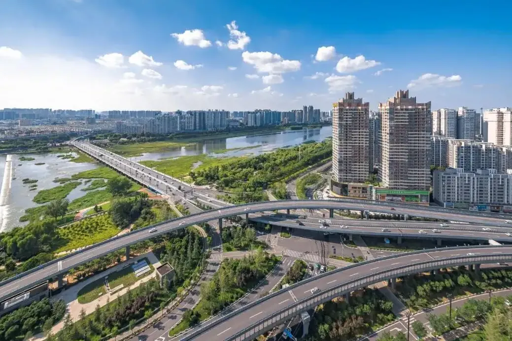 快速路红旗路:线路建设工程包含新建主路高架及匝道、德润路互通立交、沈海高速接入立交、新建地面辅路及相关附属工程。工程设计内容包含:快速路主路:工程设计范围起点位于夹河东,终点至塔山北路快速路新建黄金顶隧道,主路长4.64km,采用高架桥形式,接塔山北路隧道设置一段地面段,主路桥梁长4.454km,主路路基段长0.186km。