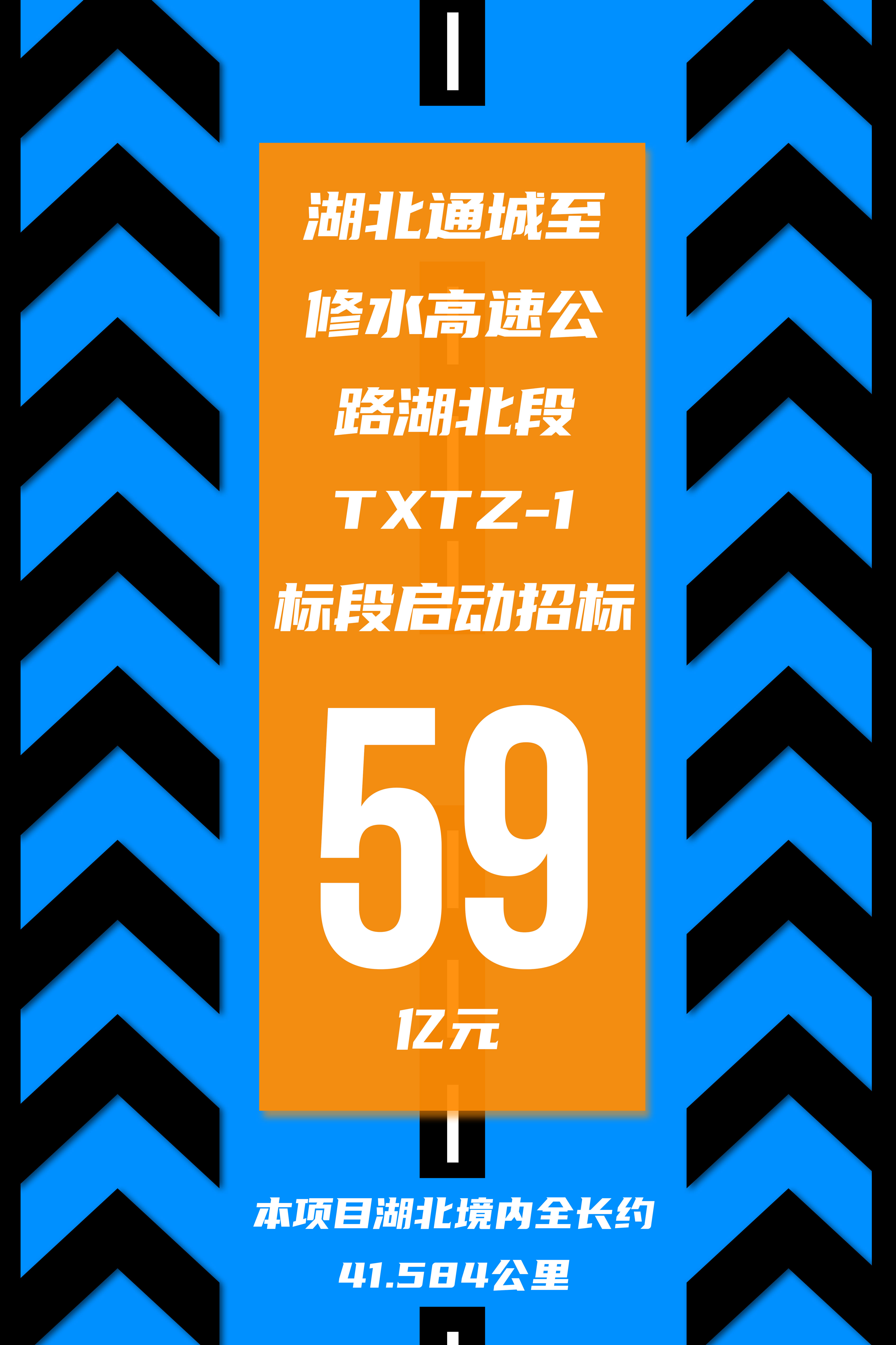 2022年5月30日,湖北省电子招标投标交易平台发布通城至修水高速公路湖北段投资人TXTZ-1标段招标公告,所属行业公路,招标人咸宁市人民政府,项目总投资约59亿元。