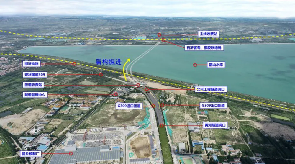 黄岗路穿黄隧道项目南起蓝翔中路与蓝翔路交叉口,向北依次下穿二环北路、绕城北高速高路堤、南岸大堤、黄河、北岸大堤、鹊山水库沉沙池后向北出地面,与在建G309互通立交相衔接。济南黄岗路穿黄隧道工程是助推济南新旧动能转换需要,与已通车的济泺路隧道共同构成北岸新旧动能转换大桥核心组团,起步区与老城联系的重要通道,对支撑起步区的开发建设具有重要意义。关键词:工程建设资讯、工程新闻、工程施工