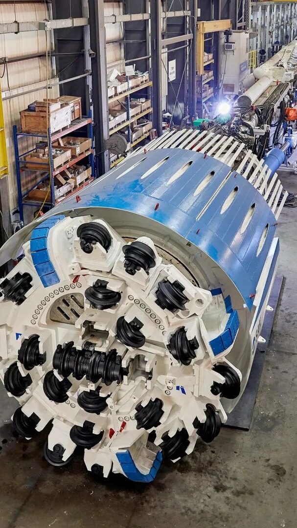 In the spring of 2022, a 4.1-meter-diameter Robbins main girder was excavating critical infrastructure tunnels for contractor SAK in St. Louis, Missouri, USA. The machine, dubbed "Mrs. Vera," is being driven during the second phase of the Jefferson Barracks Tunnel. This is a 3,050-meter-long karst limestone tunnel. This unique machine is equipped with a 360-degree advance drill rig designed to detect karst and other subsurface geology around the TBM; and a variety of surrounding rock support options, including Manali vault support, wire mesh, Ring beam installers and vault rigs.