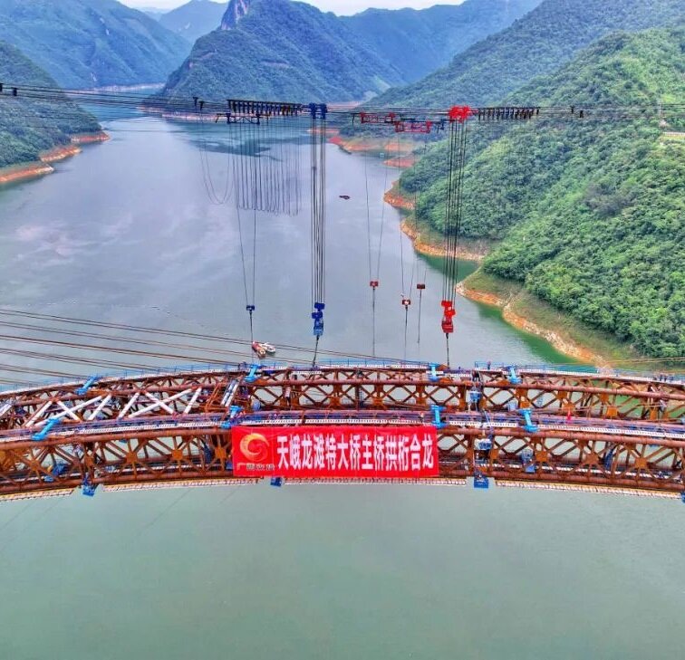 天峨龙滩特大桥共有48个拱肋节段,其中最长节段为30.5米,最重节段达185吨,拱肋最高点距水面达190米,拱肋节段采用缆索吊装+斜拉扣挂施工工艺进行安装,精度要求高,施工难度大。大桥主桥拱桁实现高精度合龙,合龙口弦管对接标高误差小于2毫米,拱轴线横向偏位小于10毫米,拱圈线形与目标线形偏差小于30毫米,为拱桥建造提供有力的技术支撑。(转载请注明见道网www.seetao.com)见道网工程栏目编辑/马雪