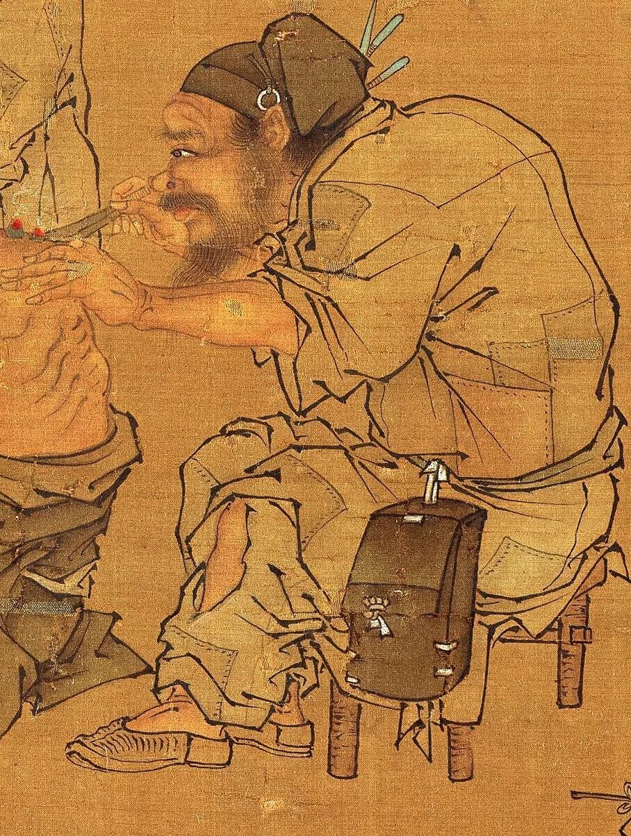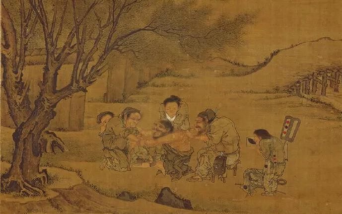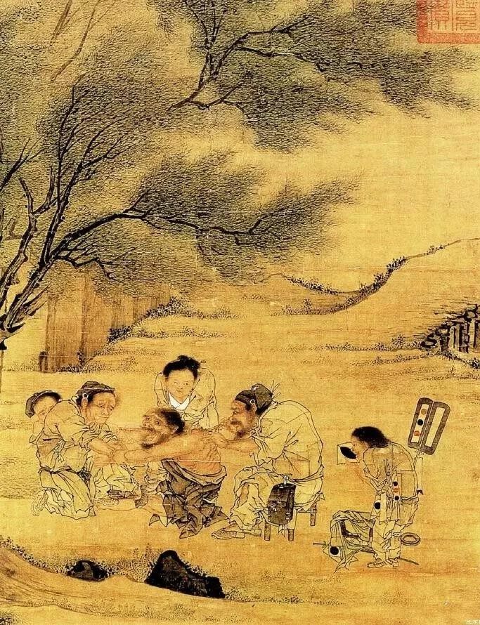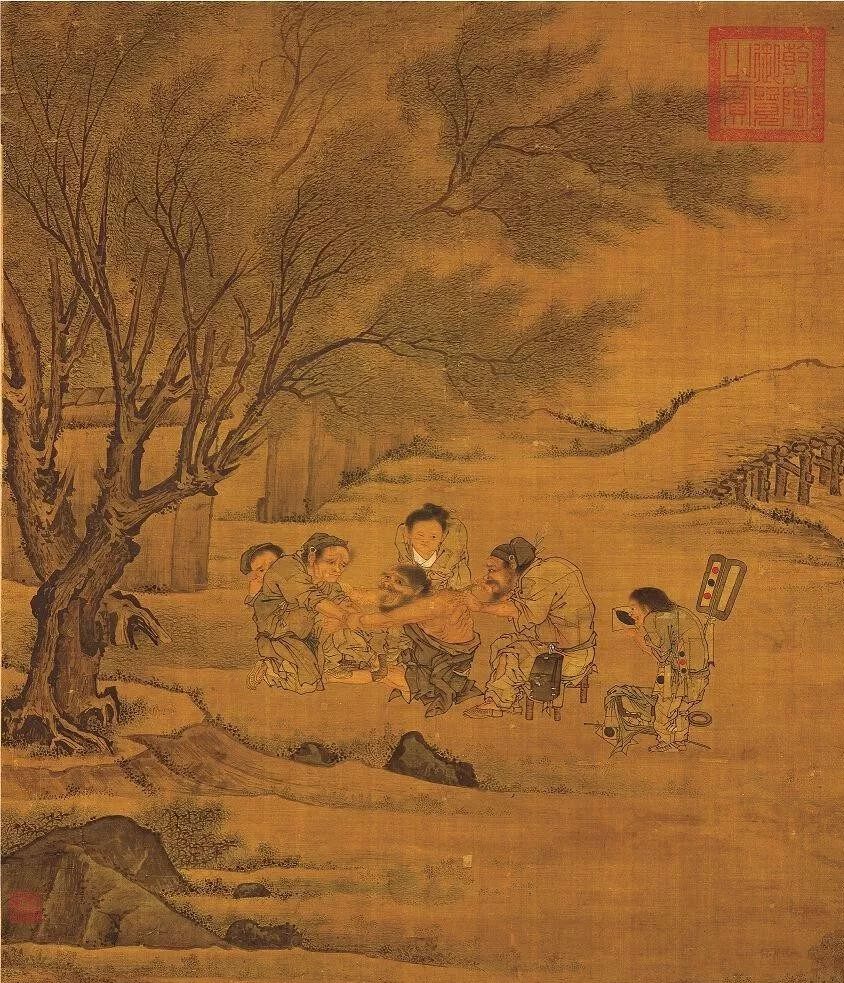 宋画是中国画坛的一座巅峰!在台北故宫博物院收藏的李唐传世作品《村医图》,又称作《艾灸图》。描绘了古代农村乡村郎中在路边树荫下为病人用艾灸治病的场景。