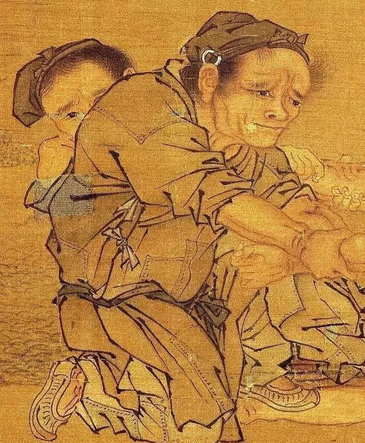 整个画面都有一种紧张的气氛,患者表情异常痛苦,郎中治疗专注镇定,抓按患者老妇人非常用力,两个少年或恐惧或担心,拿膏药的童子非常认真。不难看出,作者对当时下层劳动人民是寄予了很大同情,这也是他人文关怀的具体体现。