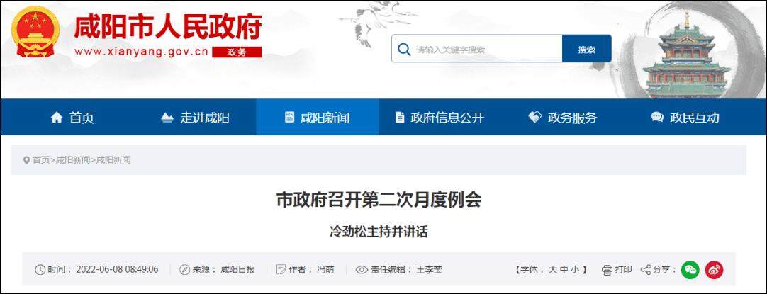 On the afternoon of June 6, 2022, Leng Jinsong, the mayor of Xianyang, presided over the second monthly regular meeting of the municipal government to summarize the work in May and arrange key tasks for June.