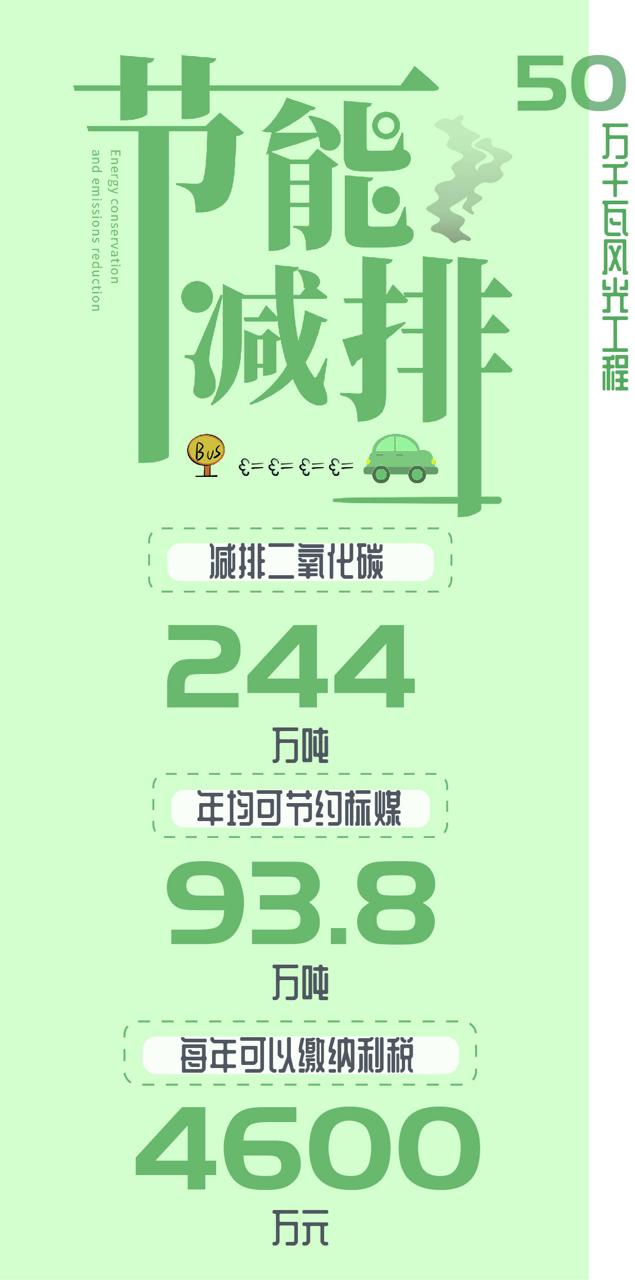 华能岭东筹建处主任、华能莫力达瓦新能源有限公司总经理孟慧梁表示,50万千瓦风光工程年均可节约标煤93.8万吨,减排二氧化碳244万吨,每年可以缴纳利税4600万元。