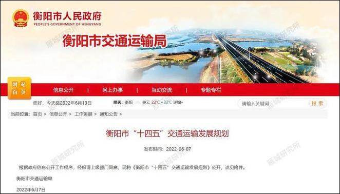 近日,衡阳市“十四五”交通运输发展规划正式发布!规划提出到“十四五”末,基本建成安全、便捷、高效、绿色的现代化综合交通运输体系,进一步强化衡阳的公路枢纽、铁路枢纽地位和服务能力,打造为全国性综合交通枢纽。