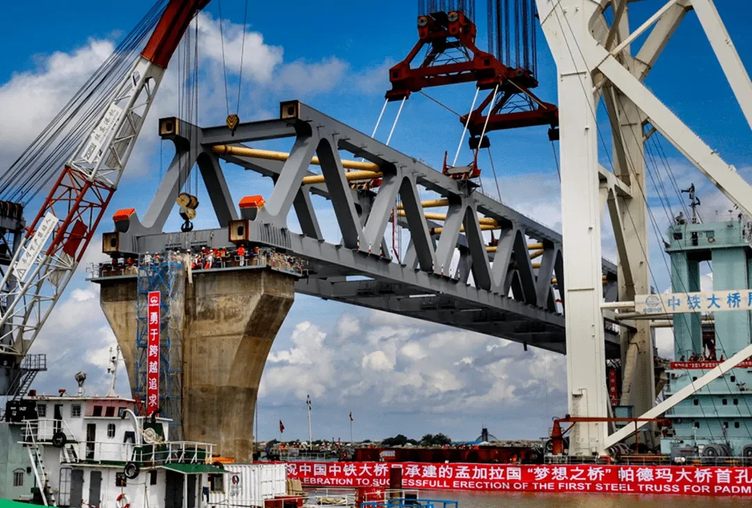 2014年,中铁大桥局承建了横跨帕德玛河的帕德玛大桥。作为孟加拉国目前最大的基建项目,大桥全长7.7公里,采用双层钢桁梁结构,上层为四车道公路,下层是单线铁路。随着大桥的建设逐渐完工,两岸居民将告别靠摆渡往来的历史。